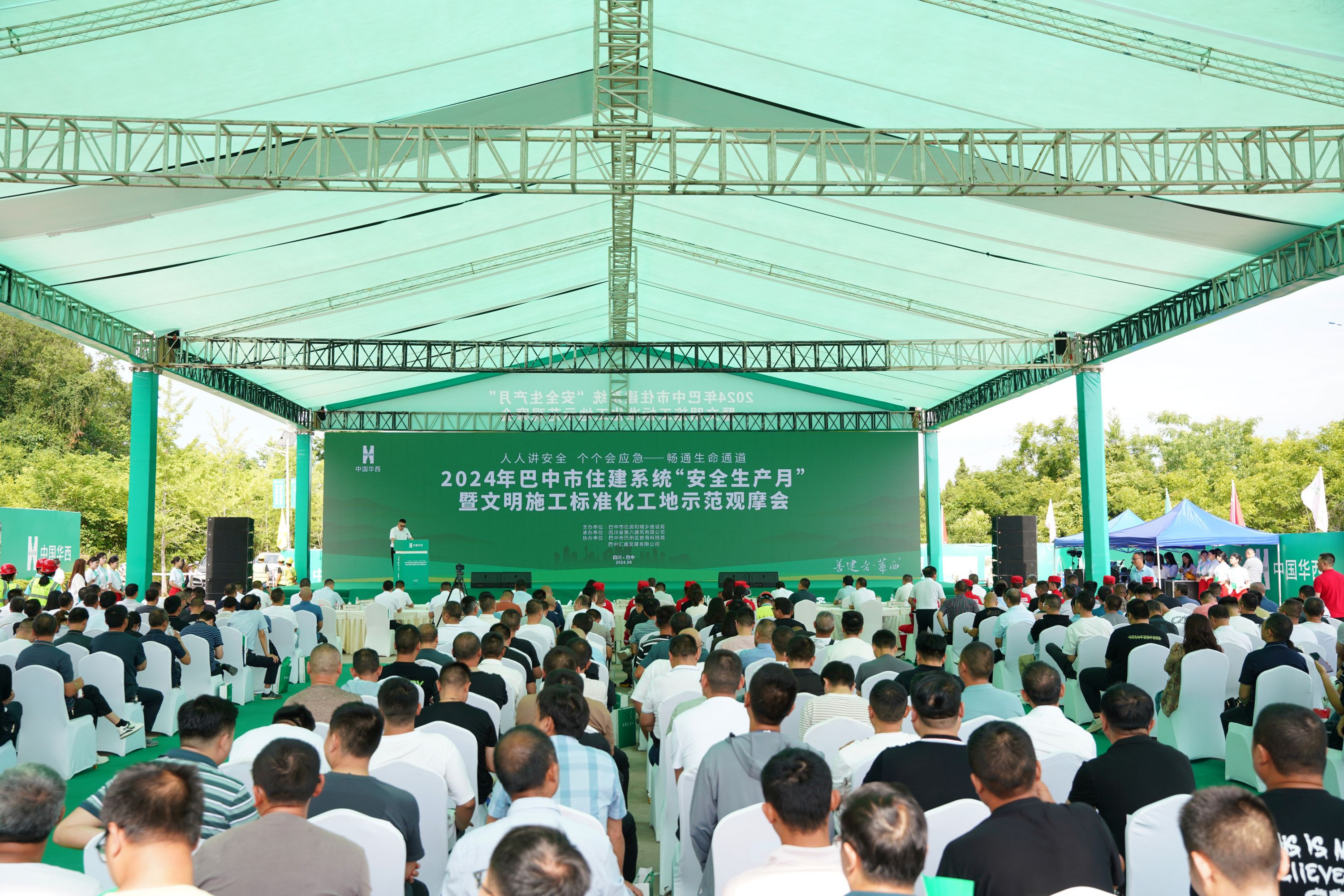 6月17日,2024年巴中市住建系統(tǒng)“安全生產(chǎn)月”暨文明施工標(biāo)準(zhǔn)化工地示范觀摩會(huì)在四川六建巴中教育園區(qū)項(xiàng)目順利舉行。巴中市住建局副局長張嵐、中國華西企業(yè)股份有限公司工程管理中心副總監(jiān)趙兵、四川六建副總經(jīng)理梅放、巴中市巴州區(qū)教育科技局局長劉祥君、巴州區(qū)住建局總工程師楊秀明、巴中匯鑫發(fā)展有限公司董事長李苑華出席活動(dòng),會(huì)議由巴中市安監(jiān)站站長劉武主持。此次觀摩會(huì)以“人人講安全,個(gè)個(gè)會(huì)應(yīng)急—暢通生命通道”為主題,現(xiàn)場觀摩人數(shù)約350人。