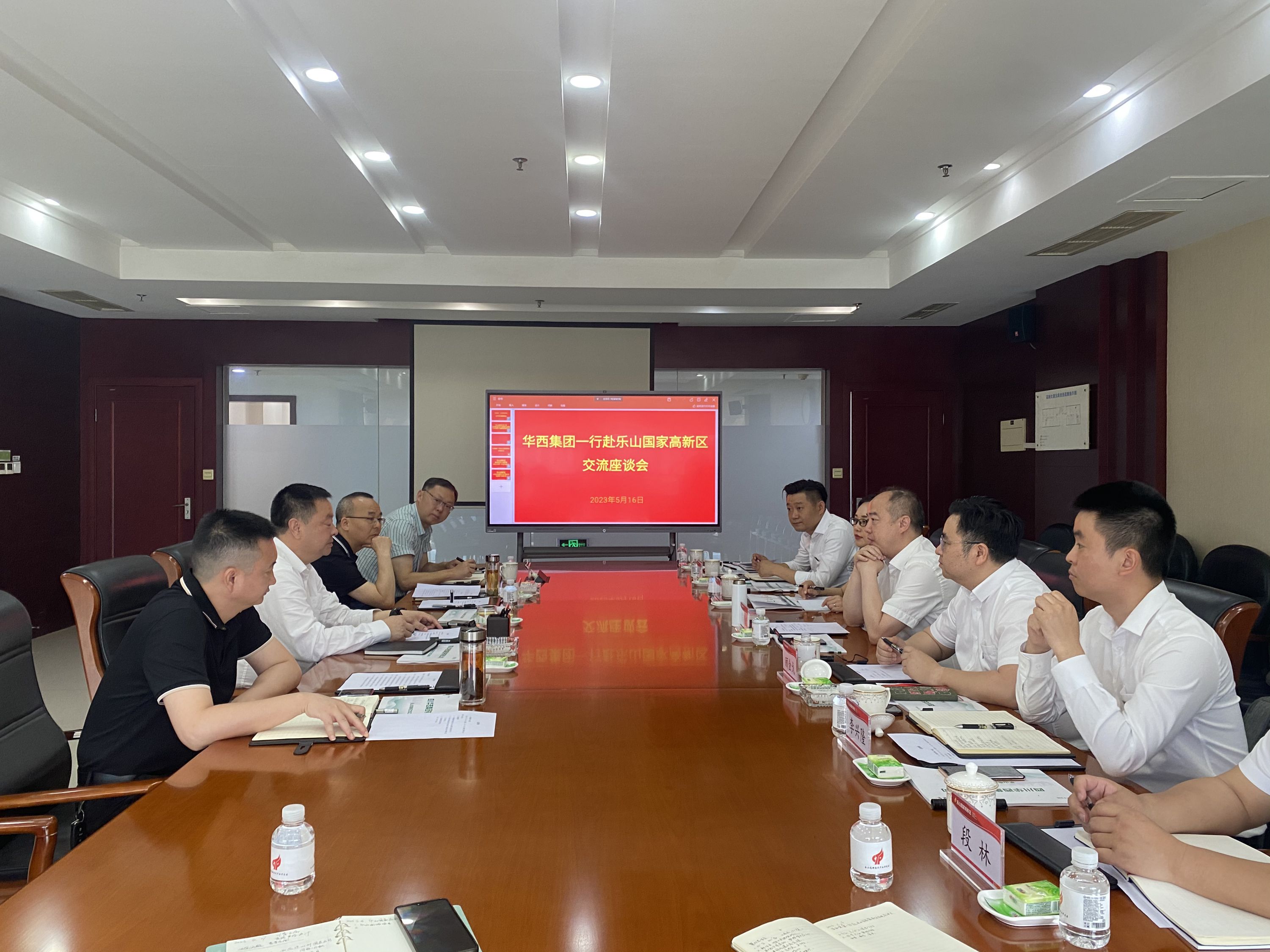5月16日,華西集團同樂山市高新區(qū)交流座談,集團副總經理陳穎銳與樂山市高新區(qū)黨工委書記廣兵圍繞智能制造、綠色低碳、智能裝備等新興產業(yè)領域深入交換意見。公司黨委書記、董事長顧金戈參加座談。