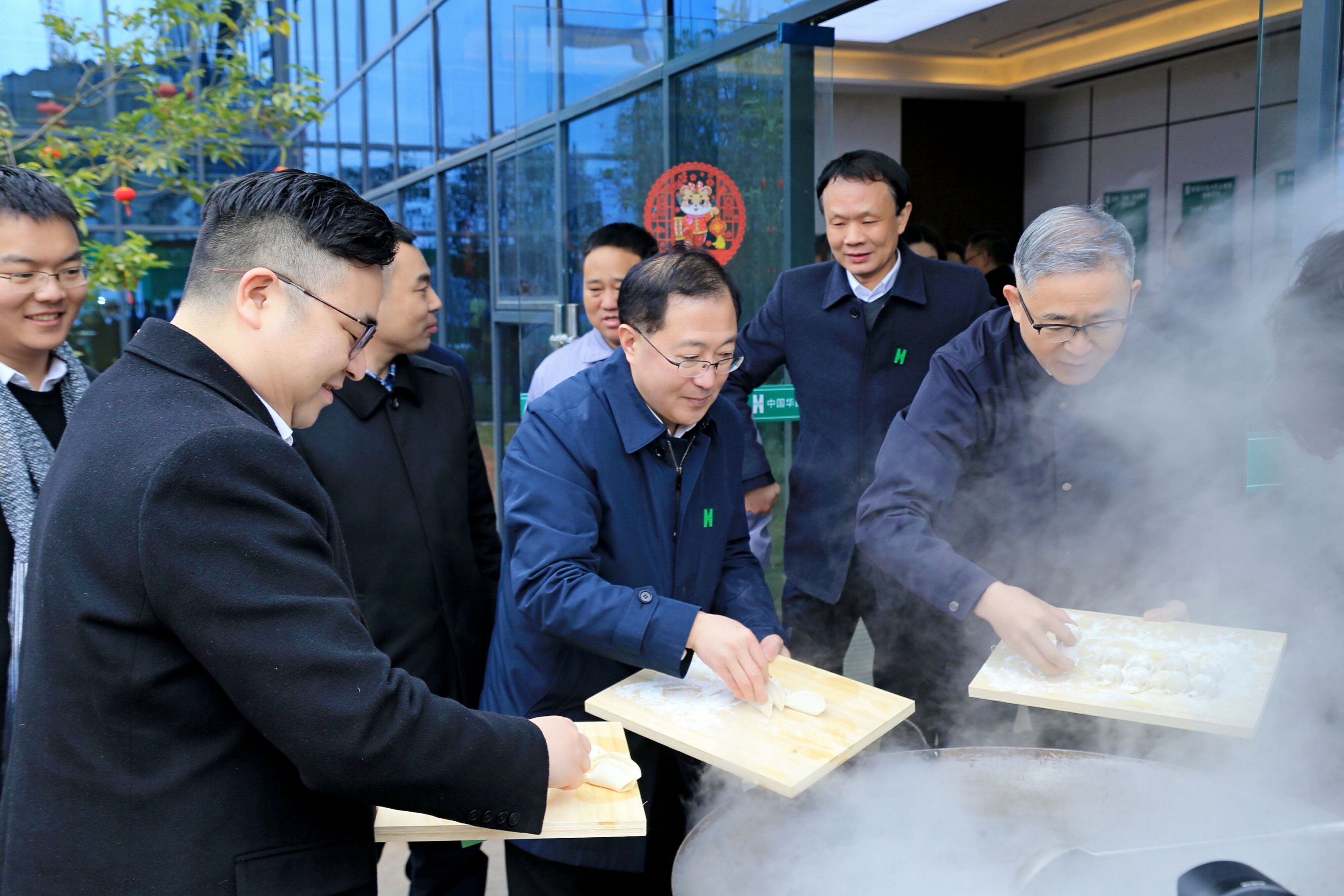隨后,楊斌一行走進(jìn)項(xiàng)目食堂,戴上袖套與項(xiàng)目管理人員一起搟面和餡,一起包餃子,一起煮餃子……食堂里熱氣氤氳,暖流激蕩,一盤盤熱氣騰騰的餃子端上桌,讓所有建設(shè)者瞬間感受到回家吃年飯的感覺?!懊恳晃蝗A西善建者都了不起,幸福生活是奮斗出來(lái)的,奮斗是為了幸福生活,祝大家新年快樂,虎虎生威!”楊斌舉起茶杯,向奮戰(zhàn)在一線的全體項(xiàng)目管理人員送上祝福和新年寄語(yǔ)。