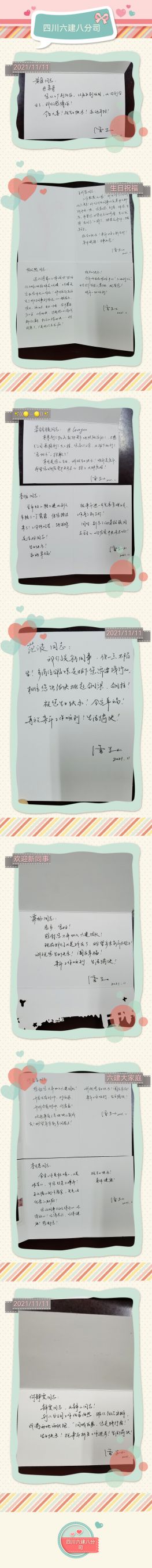 分公司總經(jīng)理雷學權(quán)代表分公司親筆為每位壽星送上生日祝福:“晏銘駿同志@loveyun,本來到了機關(guān)就能更多的照顧家庭了,不想分公司承接了大工程,您高興之余,又被“下放到老地方”,抱歉了 !本月是您的生日,誠祝生日快樂!明年是虎年,希望您響應黨中央的號召,抱上大虎娃!”十位壽星十分祝福。真誠而具有親和力的祝福體現(xiàn)著分公司領導對項目員工的備至關(guān)懷。