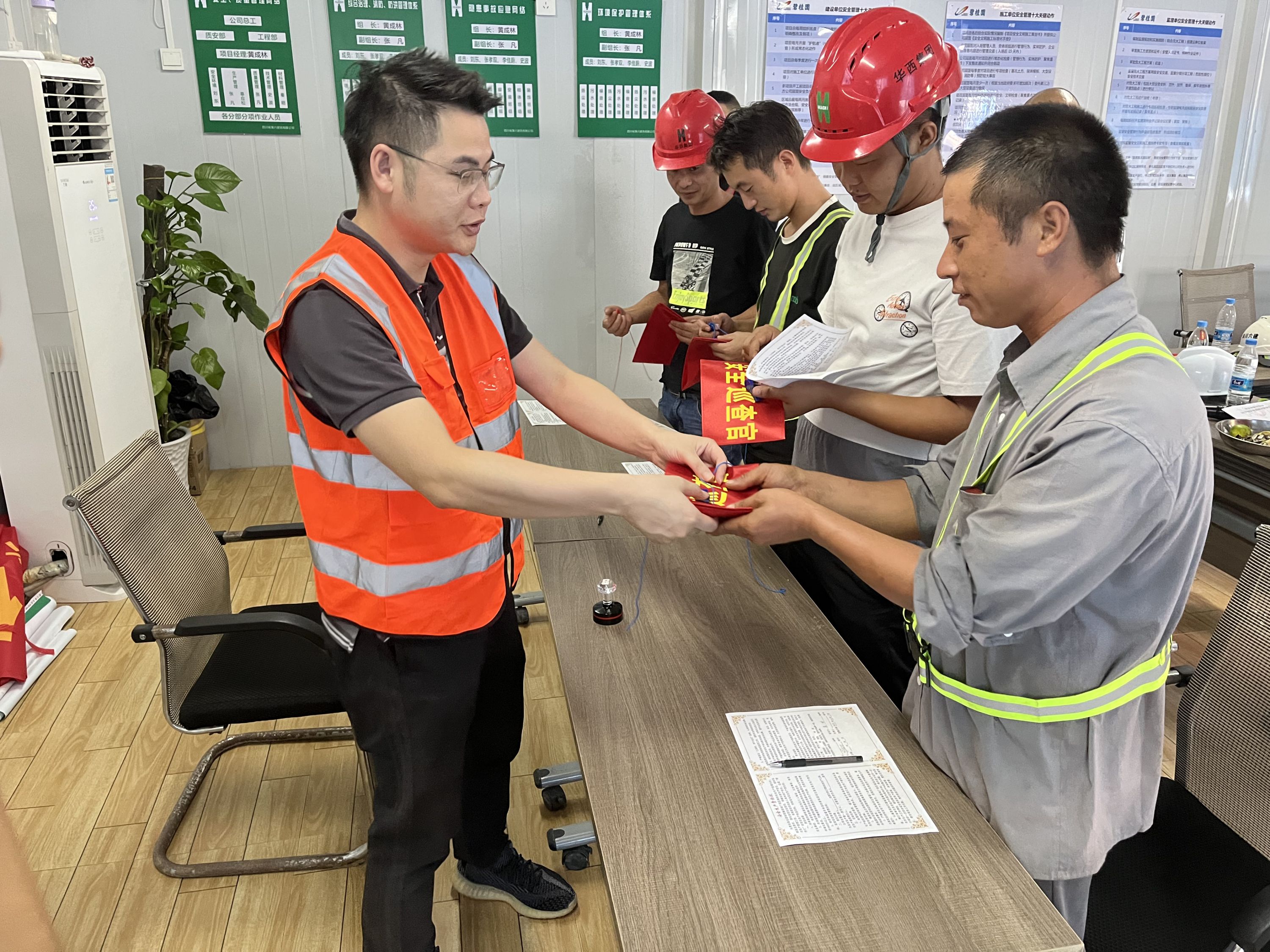 會(huì)議學(xué)習(xí)了《安全生產(chǎn)法》,觀看了案例視頻,甲方,總包,工友三方交流了想法,工友們積極發(fā)言表達(dá)了各個(gè)班組立場的建議,讓以后的安全生產(chǎn)管理工作有了更明確的方向和重點(diǎn)。會(huì)上項(xiàng)目部對(duì)在安全生產(chǎn)月中表現(xiàn)突出、工作積極的三名同事進(jìn)行了表揚(yáng)和嘉獎(jiǎng)。同時(shí),各班組表現(xiàn)優(yōu)秀的工友進(jìn)行了加入安全志愿官的宣誓,并和甲方簽訂了《安全生產(chǎn)責(zé)任狀》。最后開展慰問工人家屬活動(dòng),通過視頻方式跟工人家屬進(jìn)行了交流,對(duì)家屬在家照顧家的辛苦予以了感謝,也希望家屬們能給予更多的關(guān)心和支持,因?yàn)橛H友的寄語是最好的宣貫,是最好的關(guān)懷。