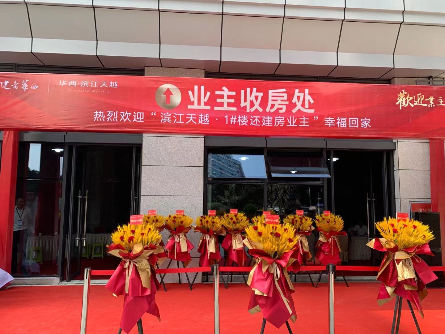 “華西鑄就 幸福回家”,2021年9月30日,濱江天越項(xiàng)目向還建業(yè)主交房。