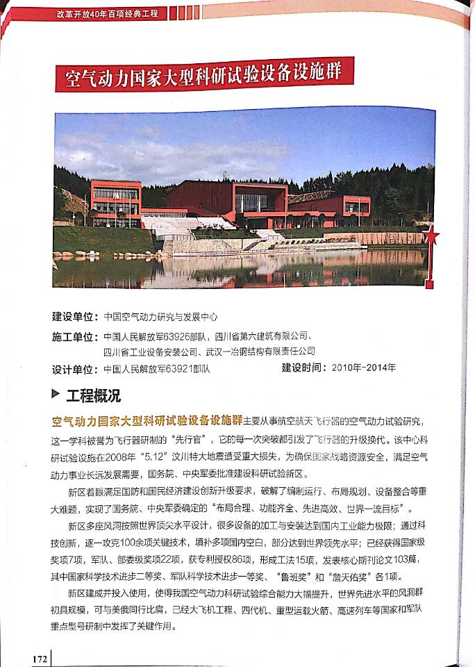 近日,在北京,由中國建筑業(yè)協(xié)會主辦并召開的“激蕩四十年,改革正當時——改革開放40周年建筑業(yè)在行動紀念大會”上,由公司參與建設的“空氣動力國家大型科研實驗設備設施群”,在喜獲“國家優(yōu)質工程金獎”的基礎上被評為改革開放四十周年百項經(jīng)典工程。