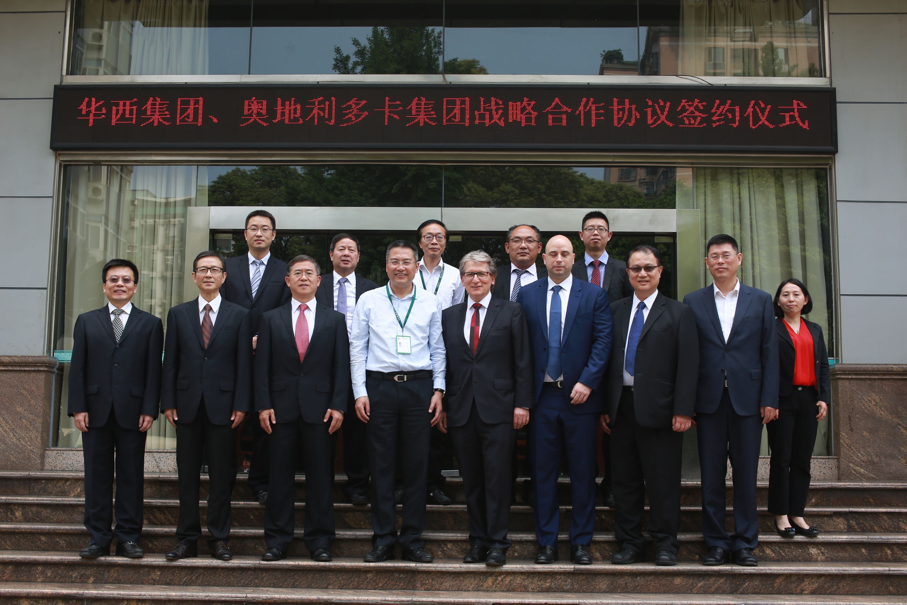 2018年4月19日,華西集團與奧地利多卡集團公司戰(zhàn)略合作協(xié)議簽約儀式在集團公司二樓會議室成功召開。奧地利多卡集團母公司副董事長Reicher Werner、多卡集團亞太區(qū)執(zhí)行總裁Stefan Schedel、多卡中國執(zhí)行總裁朱志培等人一行以及集團公司黨委書記董事長陳貴林、集團公司總經理楊斌、集團副總經理孫前元、集團公司總工程師陳躍熙、六公司董事長任予鋒、六公司總工程司薛慶、六公司模架事業(yè)部總經理劉東及相關部門負責人出席此次簽約儀式。
