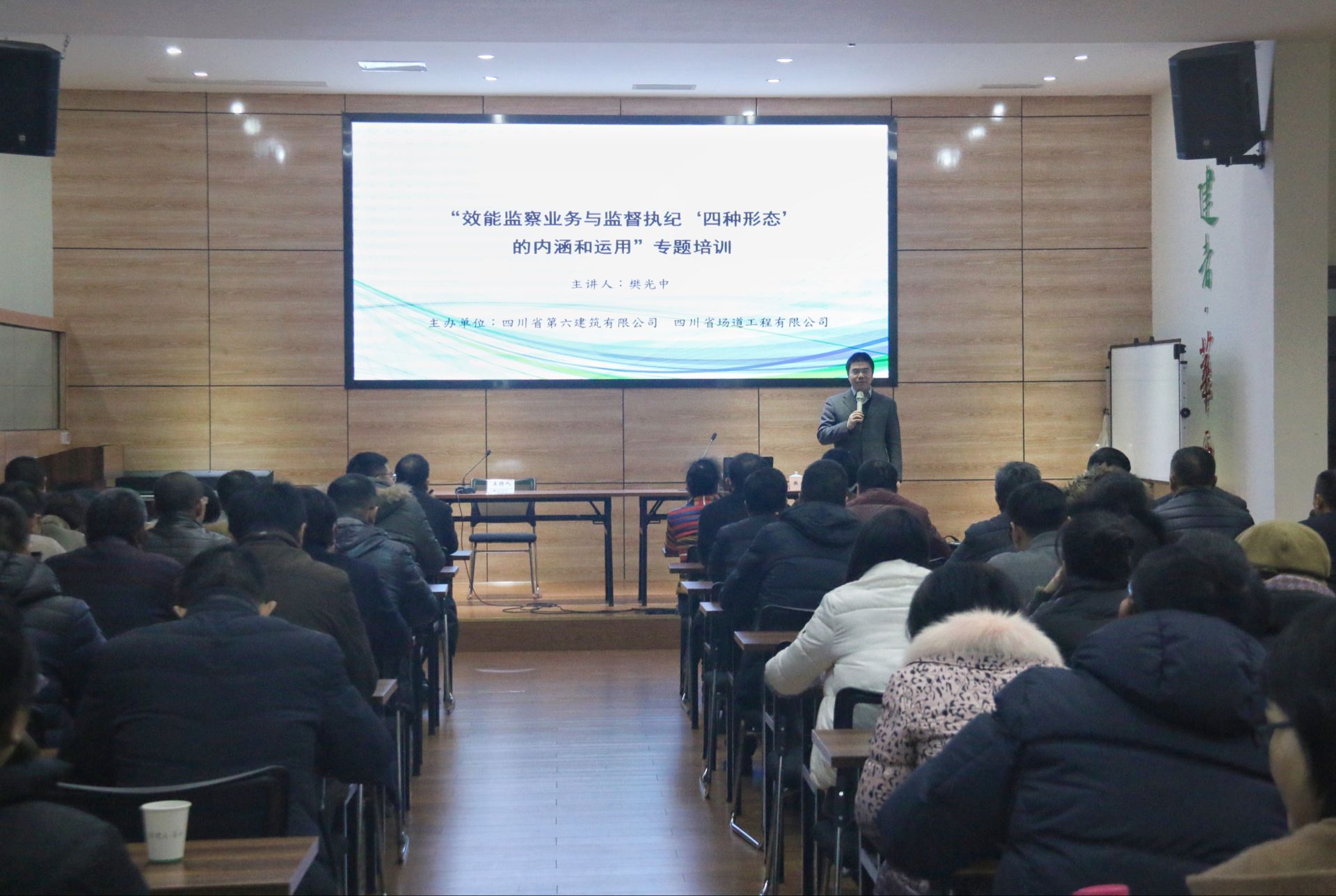 為全面提高企業(yè)紀檢監(jiān)察人員政治素養(yǎng)和履職能力,適應當前黨風廉潔建設和反腐倡廉新形勢、新任務和新要求,切實提高企業(yè)效能,2018年1月5日,公司邀請中建總公司監(jiān)察局助理局長、企業(yè)紀檢監(jiān)察業(yè)務培訓專家、中國建筑效能監(jiān)察學會秘書長樊光中為公司紀檢監(jiān)察干部、中層干部、重要崗位人員共52人上了一堂生動的專題培訓課。