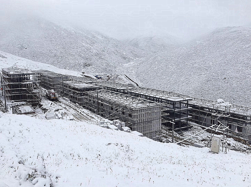 冬季來臨,色達(dá)高原晝夜溫差更加劇烈,早上10點(diǎn)鐘之前氣溫均在零度以下,連生活用水都被冰凍,工人有效作業(yè)時間急劇減少。10月28日,色達(dá)縣建設(shè)局正式下達(dá)2017年度冬季停工令,工程項目所有涉水作業(yè)全部停止。項目部制定了冬季施工方案,克服各種氣候不利因素,仍在施工可以作業(yè)的施工內(nèi)容:如墻板安裝、屋面彩瓦安裝、門窗安裝、外墻界面作業(yè)、場內(nèi)道路整治等,堅持施工至11月底,計劃在天氣允許情況下繼續(xù)施工。為確保盡早全面交付,完成省委省政府交辦的任務(wù)盡最大的努力。