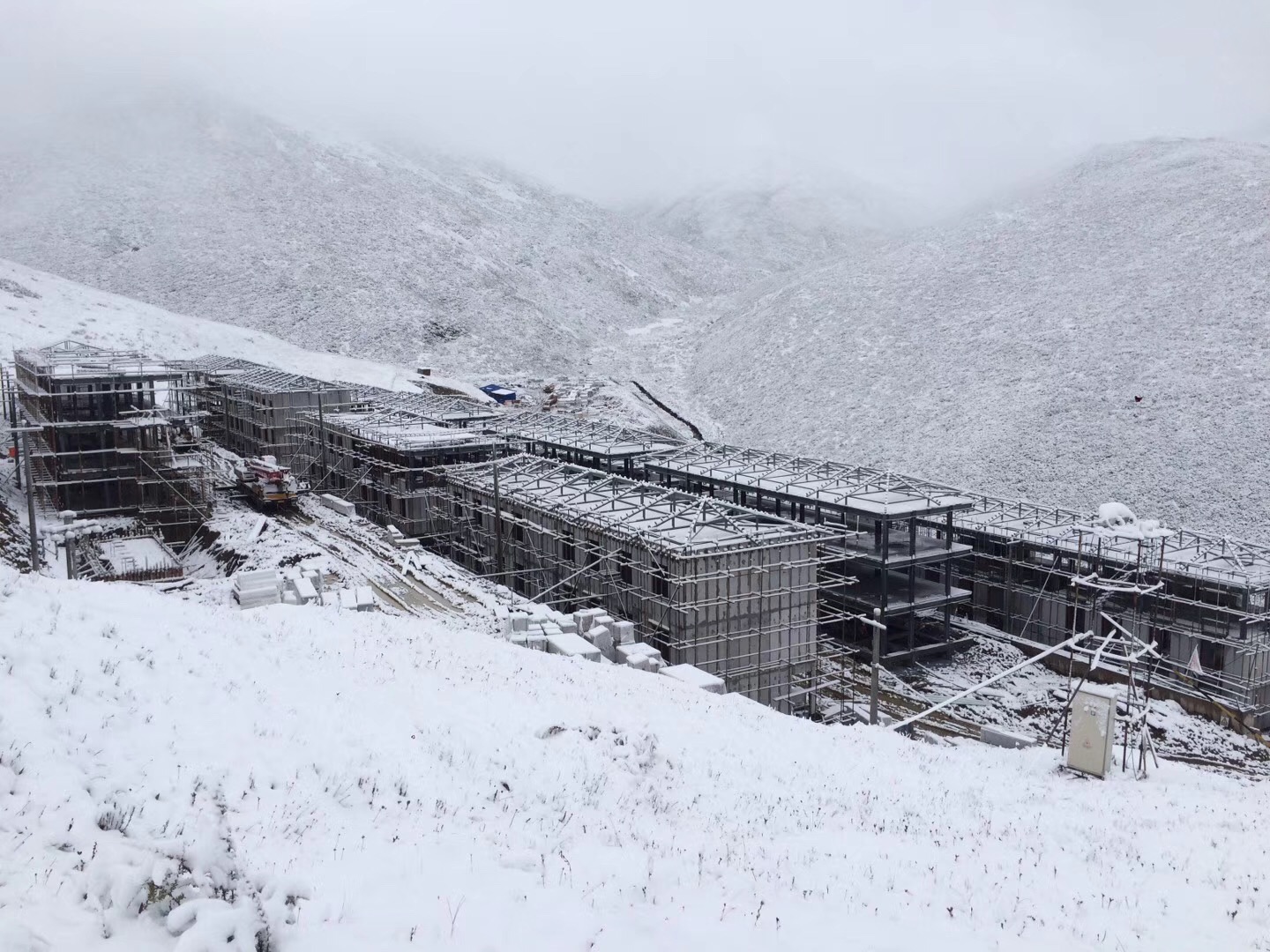 自10月初以來,位于海拔4100米的色達喇榮寺五明佛學(xué)院勸退覺姆兩個安置點建設(shè)工程點里迎來了2017年的第一場大雪,正是這一場“大雪”,給項目工作的推進帶來了不小的困擾。由于這一場提前到來的大雪,導(dǎo)致進入施工現(xiàn)場的主干道險情不斷,施工材料無法按時到達施工現(xiàn)場,給現(xiàn)場的施工提出了不小的挑戰(zhàn)!此刻,程剛和孫一文一邊嚼著方便面,一邊望著窗外的大雪,心里不禁又犯起了一陣嘀咕。“小查,明天一早先安排一臺裝載機把道路先修一下哈,明天有材料要到,這個節(jié)骨眼上千萬不能出閃失!”程剛一邊“嚼”著方便面,一邊在電話里說道。透過窗,看著燈火通明的施工現(xiàn)場,程剛和孫一文兩人心里說不出的一番滋味?!皥F結(jié)大道”、“東環(huán)線”、“和諧路”......,太多太多的痕跡見證了這里的變化,雖然兩人嘴上不說,但是心里卻都明白。