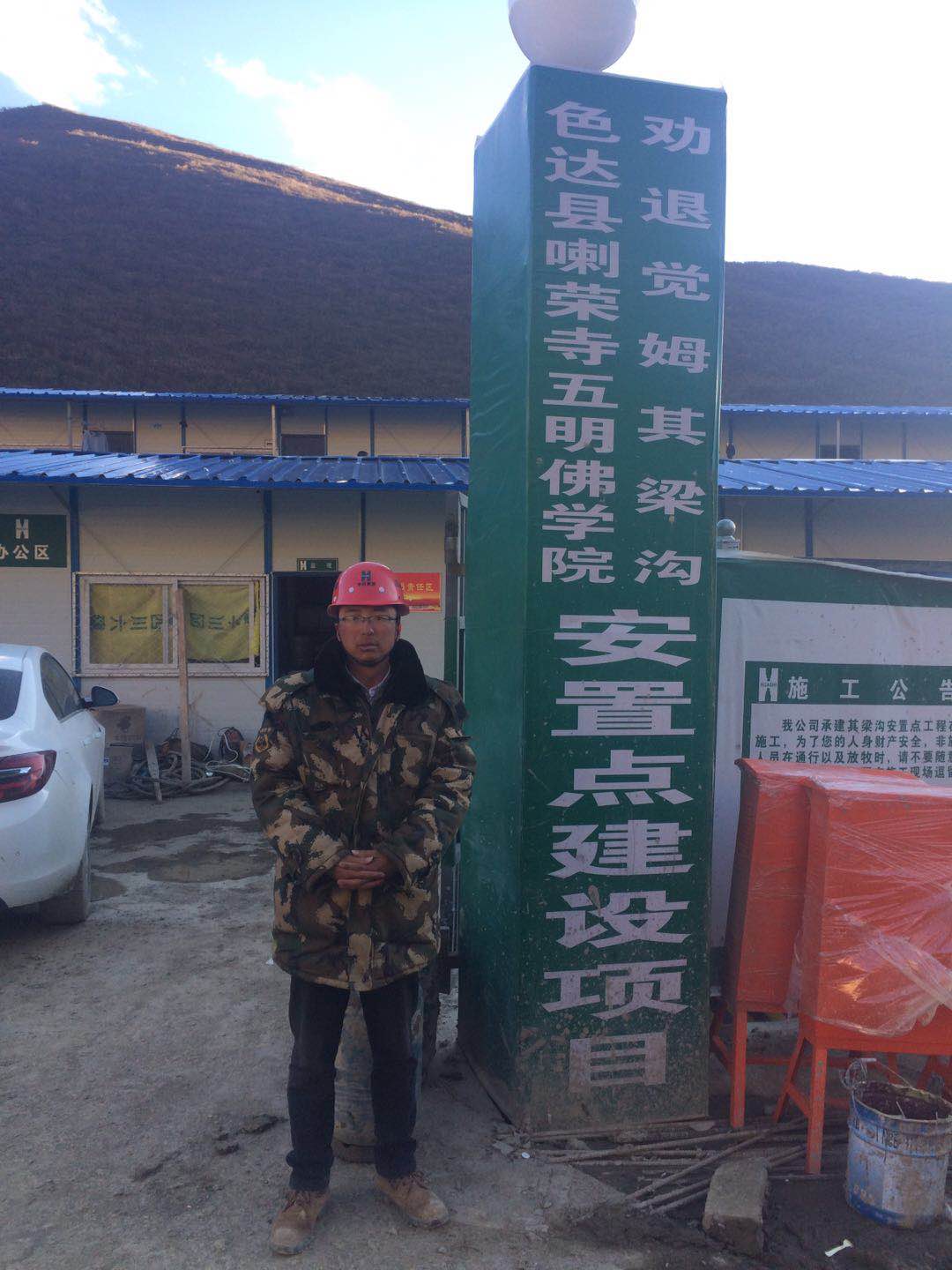 “小余,今晚上安排機械把8#.9#樓外墻板轉到樓層上去,明天開始組織人員進行安裝。”剛到海拔4300米的施工現(xiàn)場,就聽到他在用對講機講道。1米8的個子,身材魁梧,皮膚曬得黝黑,但在他嘴角的周圍卻紅了一圈,看上去格外的顯眼,后來才知道,原來是他的嘴角無法適應色達地區(qū)干燥的氣候,發(fā)炎了,每說一句話,他的嘴角就會感覺一絲疼痛。