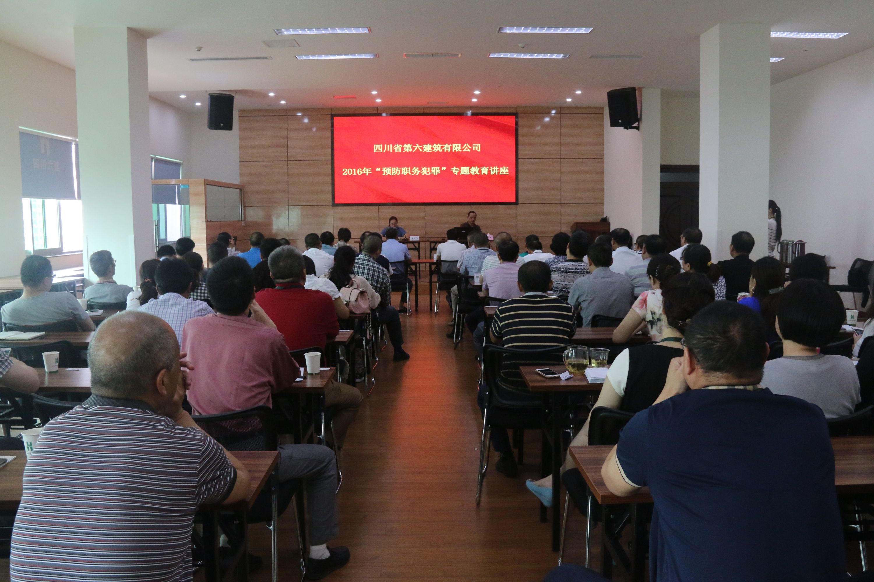 6月1日,公司邀請(qǐng)金牛區(qū)檢察院反貪局局長(zhǎng)劉志勇以《樹立廉潔從業(yè)意識(shí) 遠(yuǎn)離職務(wù)犯罪》為題,向公司領(lǐng)導(dǎo)班子成員、中層管理人員共64人做了一堂預(yù)防職務(wù)犯罪專題教育講座。公司領(lǐng)導(dǎo)凌鋒、馬洪力、袁玉家、邱山明、趙尤蕾出席講座。公司各部門負(fù)責(zé)人、高級(jí)主管;成都地區(qū)各單位黨總支書記/直屬黨支部書記、總經(jīng)理;各單位部門負(fù)責(zé)人和項(xiàng)目經(jīng)理代表參加講座。公司紀(jì)委書記、工會(huì)主席趙尤蕾主持講座。