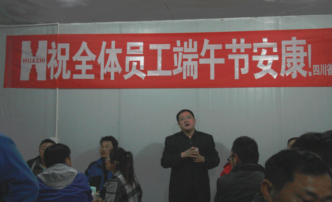 “各位同志們都辛苦了!如今大家也已經(jīng)在這片高原上奮戰(zhàn)了兩個月!首先,我代表集團公司陳貴林董事長、劉平書記和楊斌總經(jīng)理向大家說一聲‘謝謝大家,感謝大家的堅持和付出!’借此端午節(jié)之際,我特意代表集團公司及我自己來到這里看望大家,慰問大家。在這里我以茶代酒,敬大家一杯!”在開餐前,萬總向大家講道,“同志們,幸苦了,讓我們自己為自己干一杯!大家再接再厲!集團期待你們的高歌凱旋!大家有沒有信心!”“有!”伴隨著萬總的祝詞,每一位參戰(zhàn)員工熱情高漲,斗志昂揚!