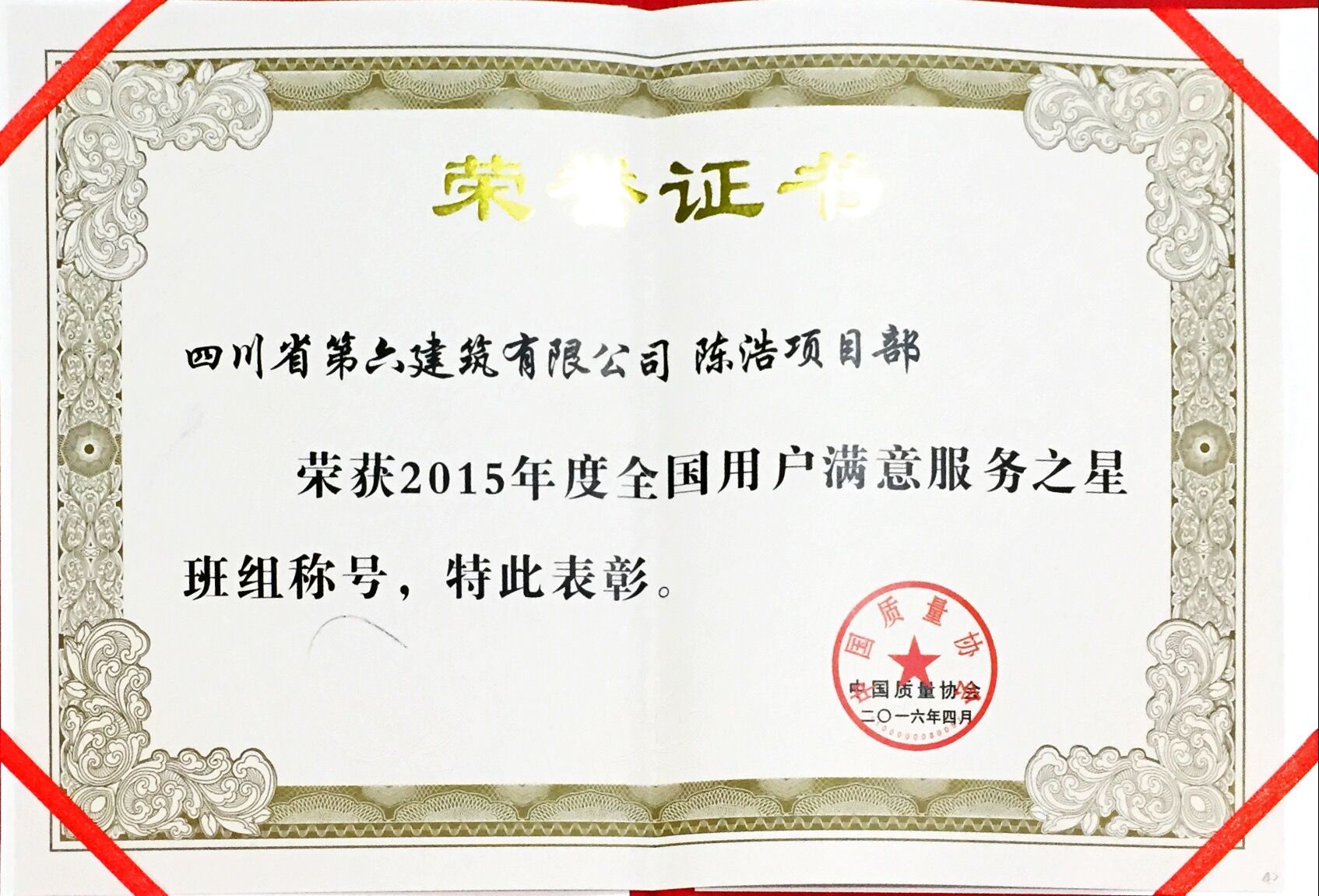近日,從中國質(zhì)量協(xié)會、中華全國總工會、中華全國婦女聯(lián)合會聯(lián)合在北京召開的2015年創(chuàng)建“全國用戶滿意服務(wù)之星”交流大會上獲得喜訊,六公司二分公司少城國際項(xiàng)目部獲得“全國用戶滿意服務(wù)之星”班組的榮譽(yù)稱號。