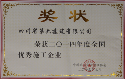 為表彰先進,樹立榜樣,充分發(fā)揮優(yōu)秀施工企業(yè)在我國工程建設行業(yè)的導向作用,經(jīng)關聯(lián)協(xié)會推薦、“全國優(yōu)秀施工企業(yè)”評審委員會審定,六公司被評為“2014年度全國優(yōu)秀施工企業(yè)”。據(jù)悉,2014年度在川注冊施工企業(yè)一共只有四家單位獲此殊榮。這既是協(xié)會對我公司2014年度業(yè)績及社會影響力的肯定,也是對我們廣大奮戰(zhàn)在生產(chǎn)一線的項目經(jīng)理和項目員工的激勵。