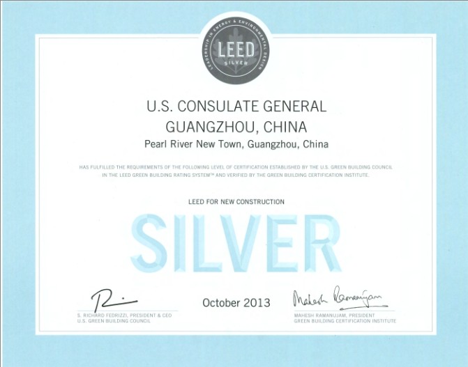 以下是廣州美領館網站對新館介紹中提及的LEED銀獎認證