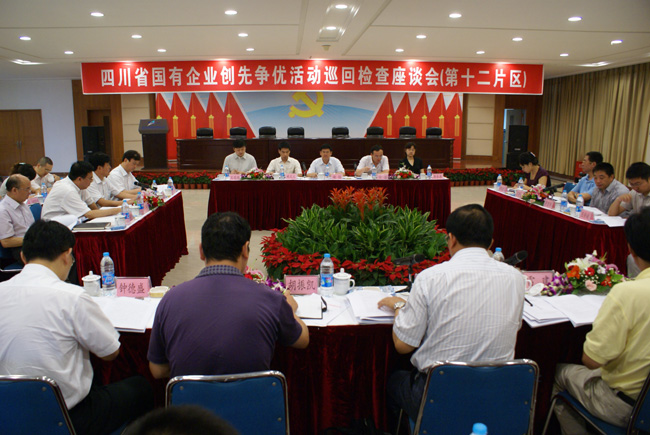 8月12日,中央企業(yè)創(chuàng)先爭優(yōu)第十巡回檢查組在成都召開四川省國有企業(yè)創(chuàng)先爭優(yōu)活動座談會。中央企業(yè)創(chuàng)先爭優(yōu)第十巡回檢查組組長謝俊出席座談會并作了重要講話。省國資委黨委副書記、主任、省國有企業(yè)創(chuàng)先爭優(yōu)活動領(lǐng)導(dǎo)小組組長彭渝作了工作匯報。華西集團(tuán)等四家單位黨委作了發(fā)言。座談會由省國資委黨委副書記、省國有企業(yè)創(chuàng)先爭優(yōu)活動領(lǐng)導(dǎo)小組副組長兼辦公室主任雷建主持。
